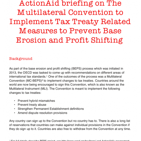 ActionAid briefing on The Multilateral Convention to Implement Tax Treaty Related Measures to Prevent Base Erosion and Profit Shifting