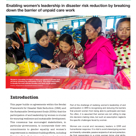 Beyond caring: Enabling women’s leadership in disaster risk reduction by breaking down the barrier of unpaid care work