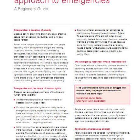 This briefing gives an overview of a rights-based approach to emergencies - what it means and how it works.  The briefing is framed around two key concepts central to ActionAid's work:  a) that